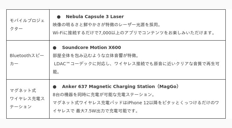 ●Ankerグループ製品であるモバイルプロジェクターやBluetoothスピーカーなどをご用意