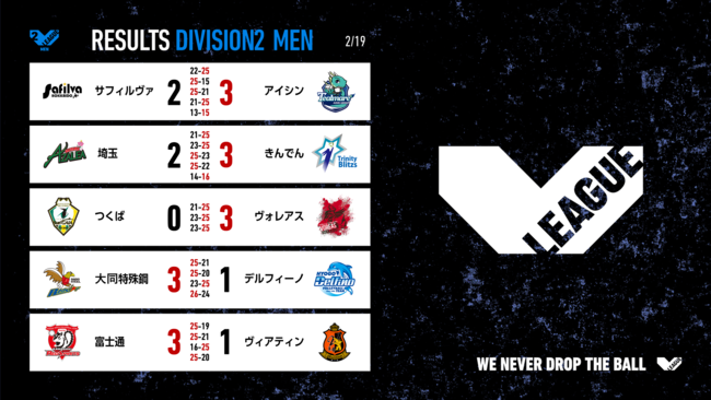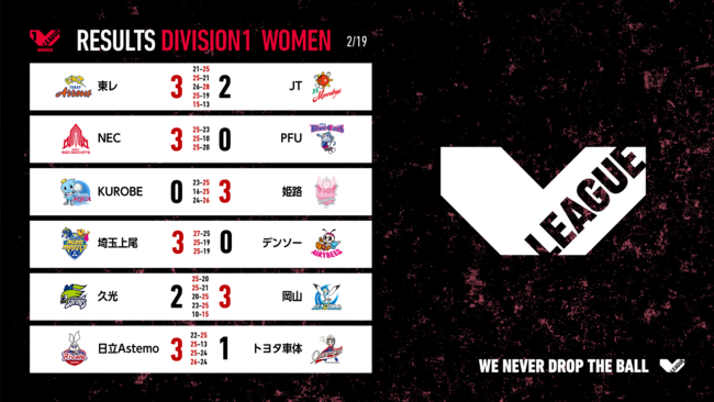 バレーボール国内最高峰リーグ V.LEAGUE【2月19日の試合結果】