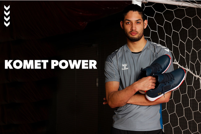 新しいトップモデルは、世界へ挑むシューズという想いを込めて、日本代表彗星JAPANにちなみ、デンマーク語で彗星を意味する「KOMET」を冠するモデルに。コメットパワーは、クッション性、安定性、フィット感に優れたオールラウンドモデルで、ハンドボールに必要な反発力、グリップ力の要素を取り入れ、パワフルなプレーをサポートし、より高く飛ぶための1足。