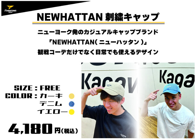 ニューヨーク発のカジュアルキャップブランド「NEWHATTAN」のボディを使用し、ワンポイントで「Five Arrows」を刺繍であしらいました。