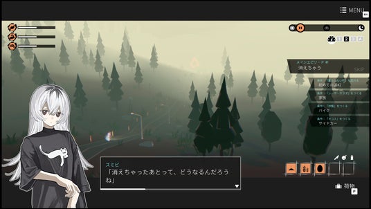多くのゲームでは目的地に到達することで物語が進んでいきますが、『ガールズメイドプディング』では、バイクに乗って道を進む「道中」で物語が進行していきます。