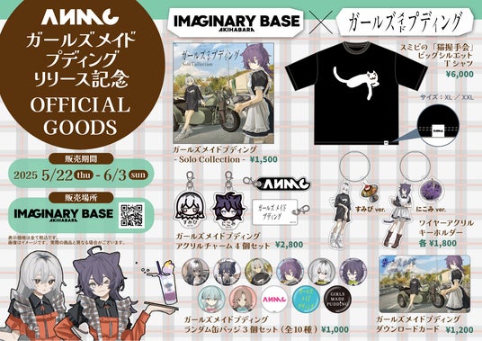 KAMITSUBAKI STUDIOが手がける音楽×ゲームプロジェクト・ANMCは、ガールズトーク・ツーリングADV『ガールズメイドプディング』のコラボカフェを「IMAGINARY BASE AKIHABARA」にて、2025年5月22日(木) ~6月3日(火)に開催いたします。