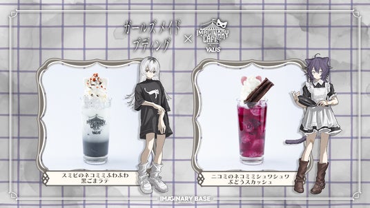 また、コラボカフェの開催を記念したゲームアップデートも配信予定で、「ニコミのネコミミシュワシュワぶどうスカッシュ」など「IMAGINARY BASE AKIHABARA」で提供されるドリンクをゲーム内でもお楽しみいただけます。