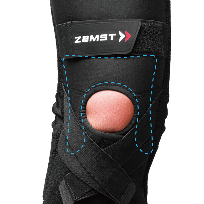 ・ヒザの左右のグラつきをしっかり抑制しながら、曲げ伸ばしをスムーズに行えるように設計された、独自のファンクショナルステー。ステーの先端は柔軟性があるため、脚の形状にしっかりとフィットし、動きを妨げません。