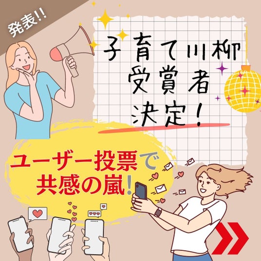 2024年6月4日 「ベビカム」は、ユーザ参加型イベント「子育て川柳」の受賞者を発表します。10作品のノミネート作品からユーザ自らがオンライン投票、オンライン配信番組での投票で受賞者を決定しました。