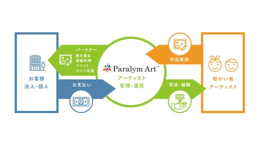 パラリンアートは、障がい者アーティストとひとつのチームになり、障がい者のアート作品を企業・個人に提供し、作者報酬をお支払いする活動です。アートを通じて社会保障費に依存せず、障がい者の社会参加と経済的自立を推進しています。アーティストの登録は無料です。