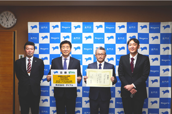 全国46都道府県にパチンコホールを展開する株式会社ダイナム(本社:東京都荒川区西日暮里 代表取締役:保坂 明)は、山口県長門市への企業版ふるさと納税(地方創生応援税制)を通じて、同市が推進する「長門市まち・ひと・しごと創生推進計画」を応援するため、100万円を寄付させていただきました。