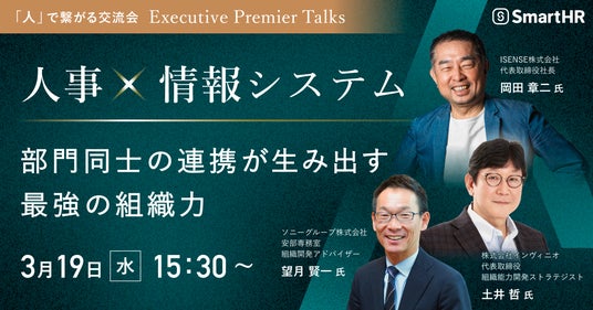 株式会社SmartHR(本社:東京都港区、代表取締役CEO:芹澤 雅人、以下「当社」)は、『~「人」で繋がる交流会~ Executive Premier Talks 人的資本経営フォーラム2025 人事×情報システム~部門同士の連携が生み出す最強の組織力~』(以下、「本イベント」)を2025年3月19日(水)にSmartHR Space(住友不動産六本木グランドタワー8F)で開催いたします。
