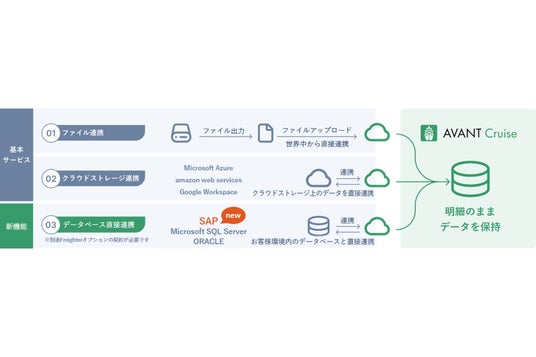 「AVANT Cruise」は、接続可能なデータソースの拡大を計画しています。今後の予定には、大手データベースへの対応が含まれており、さらに多くの企業がこの革新的なサービスの恩恵を受けることができるようになります。