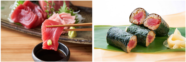右:お造りでそのまま食べるのとはまた異なる美味しさが楽しめる鉄火巻き。赤酢を使ったシャリが南紀串本のこだわりです。