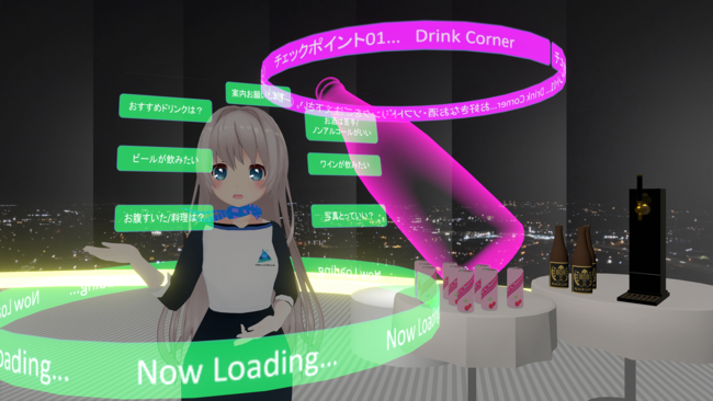 メタバース空間上のチェックポイントを自由に移動し、ポイントに応じた対話や説明を行うことが可能です。お客様の発話を促すために表示する文例もチェックポイントごとに設定することができ、製品紹介やマップ案内など、さまざまな用途にご利用いただけます。