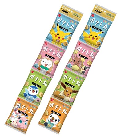 コロコロッと丸くてかわいいひとくちサイズの「ポテト丸」のパッケージに、ピカチュウをはじめ、モクローやポッチャマなどのおなじみのポケモンが登場。さぁ、お気に入りのポケモンパッケージを選んで、春のおでかけを楽しもう!!