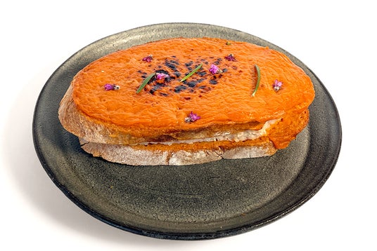 フランス料理の技法を取り入れながら食材との一体化を目指して作られたクロックムッシュ。パンにたっぷり塗られたエビ香るベシャメルソースと、サンドされた自家製の蓮根餅と大葉の相性は抜群です。