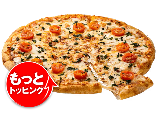 人気商品「マルゲリータ」のモッツアレラチーズを1.5倍、チェリートマトを2倍にトッピングにすることで、“もっと”食べ応え抜群に楽しめる商品。商品。
