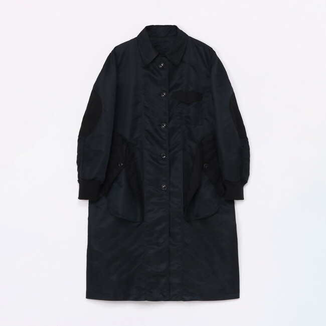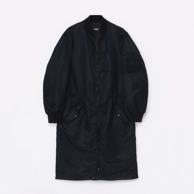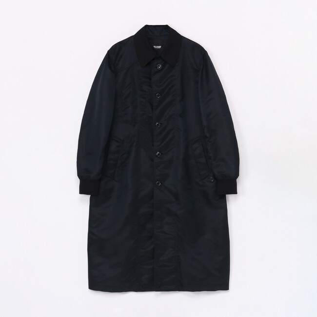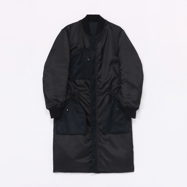新たに登場するのは、上品な光沢のあるナイロンツイル生地を使用したミリタリーテイストなロングコート2型。スポーティーな印象のボンバーコートと、上品なスタイルのステンカラーコートはしっかりとした肉厚感もありながら、非常に軽くリバーシブル仕様です。それぞれ裏返すと、ポケットやブランドタグが表に出るインサイドアウトのデザインとなっており、よりカジュアルな印象でお楽しみいただけます。袖をリブにし、裏返してもポケットが使用可能な拘りのポケットが特徴的。01と03の2サイズのご用意で、ユニセックス展開です。