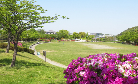 明るく開放的な芝生広場を中心に、池や野球場、テニスコートなどの運動施設のある公園です。野球場およびテニスコートは市民の皆様に広く利用されています。