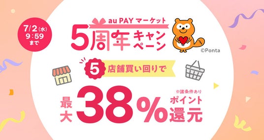 KDDI、auコマース&ライフは、「au PAY マーケット」へ名称を変更して5周年(注)を迎えたことを記念し、お客さまへの感謝を込めて2025年6月20日から7月2日まで「au PAY マーケット 5周年キャンペーン」(以下 本キャンペーン)を開催します。