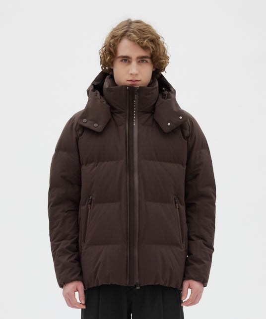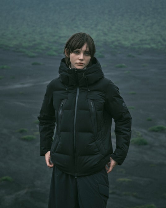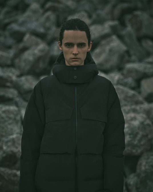 これらの課題を解決するため、ダウンパックの形成には縫製ではなく特殊な熱圧着技術を採用し、ステッチを排除。袖などの縫製が必要な箇所には裏面にシームテープ加工を施すことで雨や雪の日の快適性を飛躍的に向上させることに成功。「防水性」と「耐水性」を備え、ダウンジャケットに新しい価値を創造しました。一見、ハイテクジャケットにも思えるこのダウンジャケットは、裁断、ダウンパックの形成、熱圧着加工、ダウン詰めまで、すべての工程において経験豊富な職人の手によって一つ一つ形作られています。異彩を放つデザインも常識を覆したテクノロジーもすべては、ひとりひとりの手と情熱により支えられています。