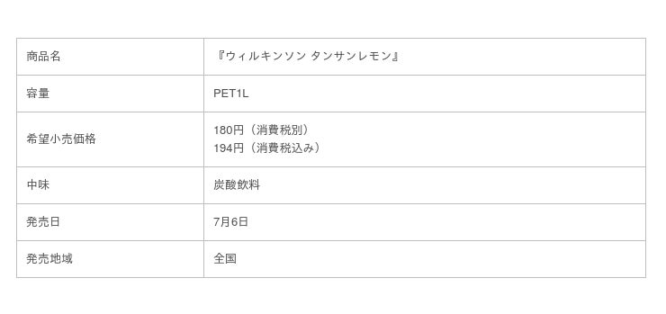 アサヒ飲料株式会社(本社 東京、社長 米女 太一)は、『ウィルキンソン タンサンレモン』(PET500ml、PET1L)を7月6日に全国でリニューアル発売します。