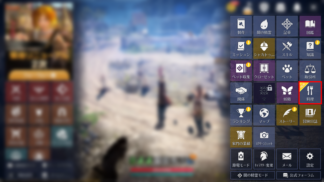 料理は一般地域、拠点戦、攻城戦、黒い太陽、歪んだ悪夢地域で利用できます。