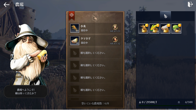 農場には品種改良された種を植えることができ、各村の種子商人から購入することができます。