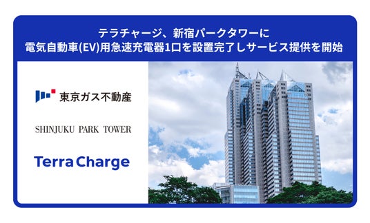 電気自動車(EV)向け充電サービス「Terra Charge(テラチャージ)」を展開するTerra Charge 株式会社(本社:東京都港区、代表取締役社長:徳重徹、以下、当社)は、東京ガス不動産株式会社(本社:東京都港区、代表取締役 社長執行役員:佐藤裕史、以下、東京ガス不動産)が保有・運営する新宿パークタワー(東京都新宿区西新宿三丁目7番1号)へ、50kW出力の急速充電器1口の設置が完了し、2025年3月24日にサービス提供を開始したことをお知らせします。