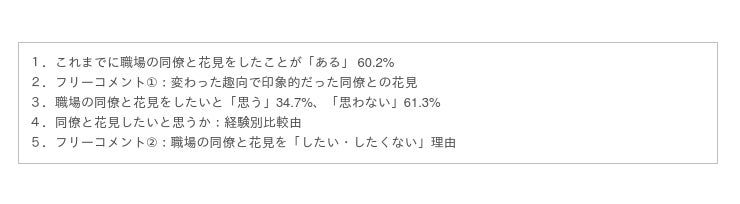 2.フリーコメント1.:変わった趣向で印象的だった同僚との花見
