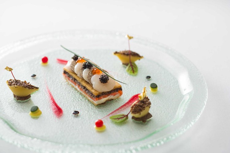 ・的鯛の白板昆布のヴァプール 黒トリュフを纏わせて