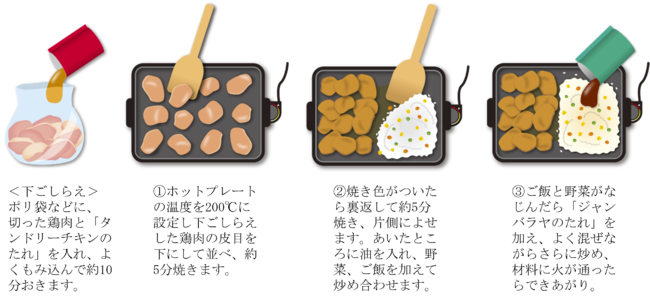 そこで、日本でもファミリーレストランや学校給食でメニュー化されている、インドの鶏肉料理「タンドリーチキン」とアメリカ発祥のスパイシーなご飯料理「ジャンバラヤ」に着目し、2つのメニューを同時に楽しむことができる「タンドリーチキン&ジャンバラヤの素」を発売します。