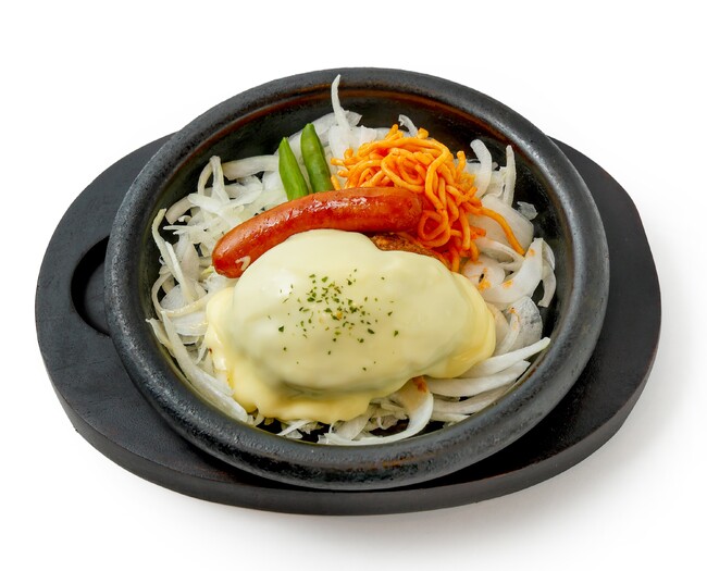 関西を中心に展開する三田市発のステーキレストラン「三田屋本店-やすらぎの郷-」が作る、定番の牛肉100%ハンバーグに4種類のチーズを使った濃厚チーズソースをたっぷりかけたチーズハンバーグです。鉄板の上でじゅわ~ととろけるたっぷりのチーズソースは写真映え抜群!