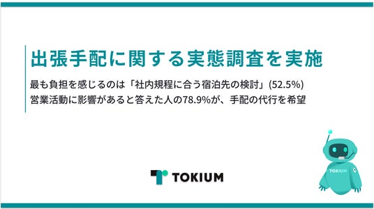経理AIエージェントを提供する株式会社TOKIUM(本社:東京都中央区、代表取締役:黒崎 賢一、以下「TOKIUM」)は、全国の営業担当者1,100名を対象に、出張手配に関する実態調査を実施しました。