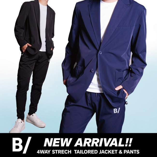 サッカーを身に纏うライフスタイルブランド「B/(ビースラッシュ)」から4WAYシリーズでお馴染みのストレッチナイロン生地を使用した“テーラードジャケット”・“テーラードパンツ”が新登場。