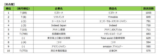 求人サービスや季節商材のテレビCMが上位にランクイン