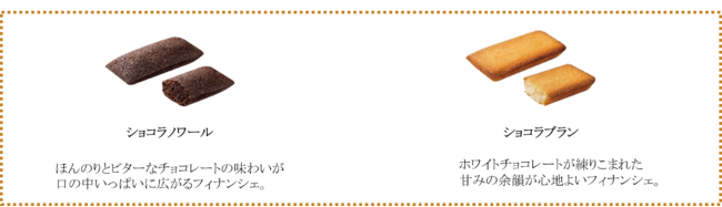 ダークチョコレートとホワイトチョコレートそれぞれの特長を味わえる「ショコラノワール」と「ショコラブラン」の2種類のフィナンシェをご堪能ください。