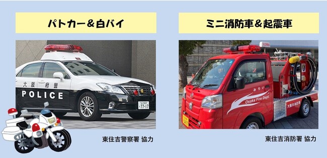 6月3日(土)は東住吉警察署からパトカーと白バイが、6月4日(日)は東住吉消防署からミニ消防車と起震車がやってきます!日頃はあまり意識しない「防犯」「防災」をはたらく車の展示や地震体験などを通して楽しく学びませんか?