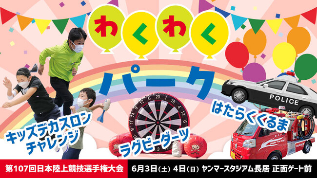 陸上の「走・跳・投」が体験できる『キッズデカスロンチャレンジ』やJAPAN RUGBY LEAGUE ONEに所属するNTTドコモハリケーンズ大阪による『ラグビーダーツ』体験、消防車やパトカーによる防災体験などを無料でお楽しみいただけます。