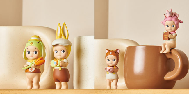 『Sonny Angel mini figure Enjoy The Moment』では、「おうち時間」をテーマに、料理、ヨガ、手芸など、おうち時間を楽しむソニーエンジェルの姿が表現されています。