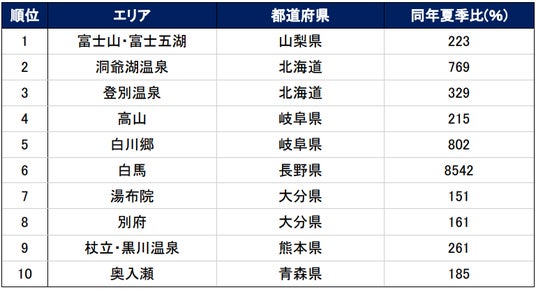 韓国:富士山・富士五湖に加え、登別温泉、由布院、別府の温泉地の人気が上昇。