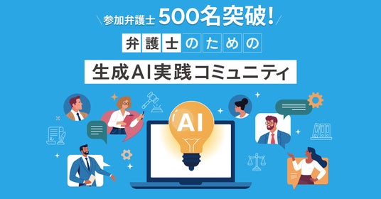 「弁護士のための生成AI実践コミュニティ」の参加弁護士が、創設から3か月弱となる8月13日時点で500名を突破したことをお知らせいたします。