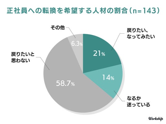 回答があった人材のうち、正社員転換を希望する人材の割合は約21%となりました。