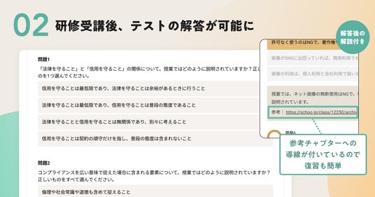 AIが標準問題を自動生成し、対象研修の受講後テストを手間なく設定・実施可能に
