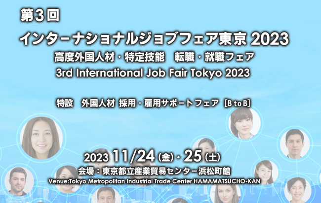 インターナショナルジョブフェア実行委員会(実行委員長:株式会社イノベント 取締役代表執行役社長 堀 正人)は2023年11月24日(金)・25日(土)、東京都立産業貿易センター 浜松町館にて、「第3回 インターナショナルジョブフェア東京 2023」を開催いたします。