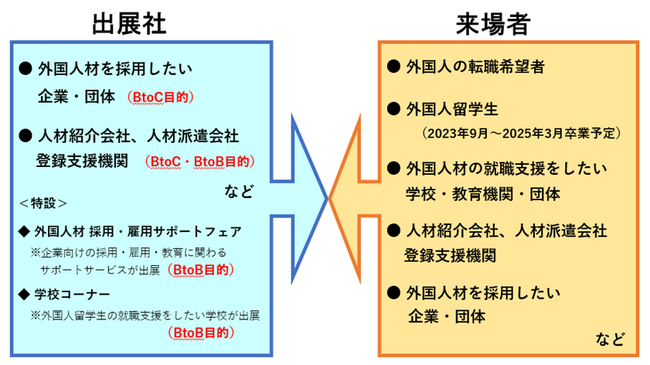本展は、一般的な採用目的のジョブフェアと異なり、人材会社も出展可能です。