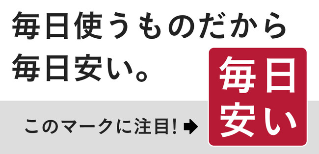 今回の、「毎日安い」では、衣料用洗剤、飲料・加工食品、などの生活必需品から、家電、自転車、建築資材といったプロの職人が毎日使う物まで、お客様のくらしに欠かせない人気商品を中心にセレクトした約1200アイテムを、その名の通り、毎日いつでもお値打ちな価格で提供していきます。