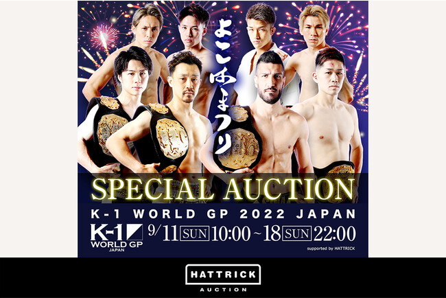 日本発祥の立ち技格闘技として1993年に始まった「K-1」は、プロを頂点、アマチュアを底辺としたピラミッド構造の構築を行い、K-1をスポーツとして確立させることを目指し、活動しています。新しいコンセプト「100年続くK-1」のもと、K-1 JAPAN GROUPでは新たな取り組みとして、スポーツチーム公認オークション「HATTRICK」を通じたチャリティーオークションの開催を決定、この度7度目の開催を迎えました。