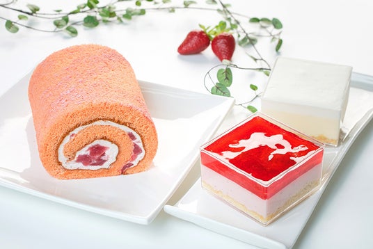 〈パティスリー ジョリ・クレール〉はこだて恋苺ロール、四角いチーズケーキ(はこだて恋苺・生乳)