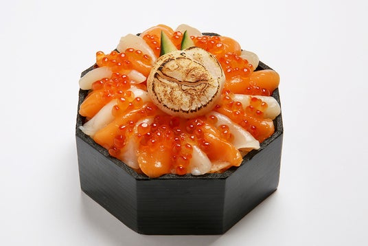 北海道産の白玉ほたてと希少な赤玉ほたてを贅沢に並べ、炙りほたてをトッピング。色鮮やかな赤玉ほたては、白玉ほたてに比べてやや甘みが強いのが特徴で、2種類のほたてが味わえる一折です。