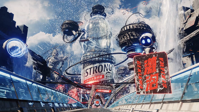 コンテンツスタジオ CHOCOLATE Inc.(本社:東京都渋谷区、代表取締役:渡辺裕介)は、本日7月15日に、強炭酸水「サントリー THE STRONG 天然水スパークリング」(サントリー食品インターナショナル株式会社、本社:東京都港区、代表取締役社長:齋藤和弘、以下、「ザ・ストロング」)の新パッケージ発売を記念して、「SPLaSh」MVを公開したことをお知らせいたします。本作は、「ザ・ストロング」のプロモーションとして公開された動画「GEKIAWA THE STRONG」のテーマソング「SPLaSh」のMVで、VFXスタジオ KASSENの元、若手CGクリエイターのwanoco4D、YumaArtらが参加し制作。デザインを刷新した「ザ・ストロング」の巨大オブジェクトが佇む近未来都市をGEKIAWA BIKEに乗り込んだARuFaが駆け抜けていく、疾走感溢れる映像となっています。