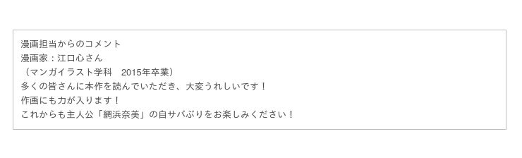 漫画:江口心(マンガイラスト学科/2015年卒業)