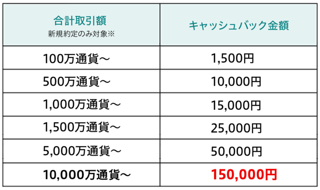 【新規口座開設キャンペーン】新規口座開設&お取引で最大150,000円キャッシュバック